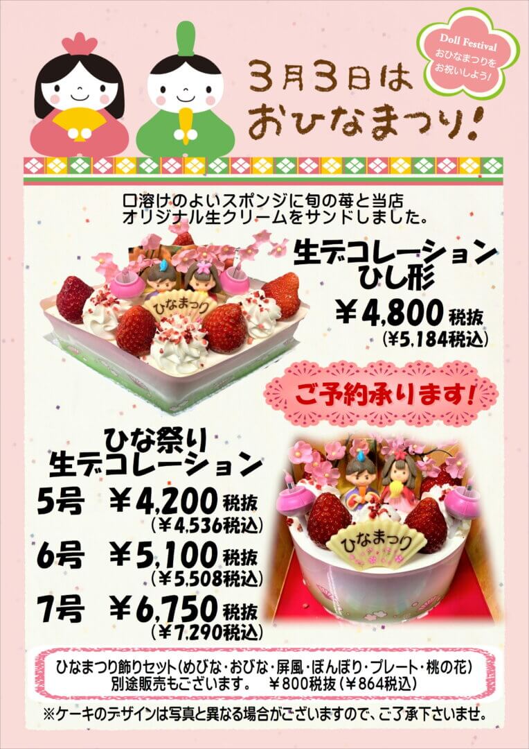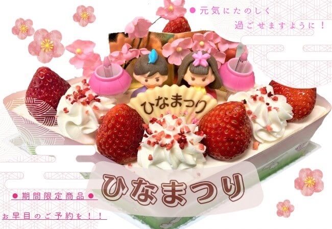 商品情報 ひなまつりケーキ🎎ご予約承ります! 2026年2月3日 / お子様の健やかな成長を願い、皆さんでケーキを囲む時間が素敵なものになりますように、心を込めてお作りします!ご予約はオンラインショップ、店頭または📞お電話にて承ります!デコレーションケーキは数量限定となりますので、是非ご予約くださいませ🙌 🎎ひなまつりギフトは準備でき次第お知らせいたします🙇 皆様のご来店を心よりお待ちしております♪