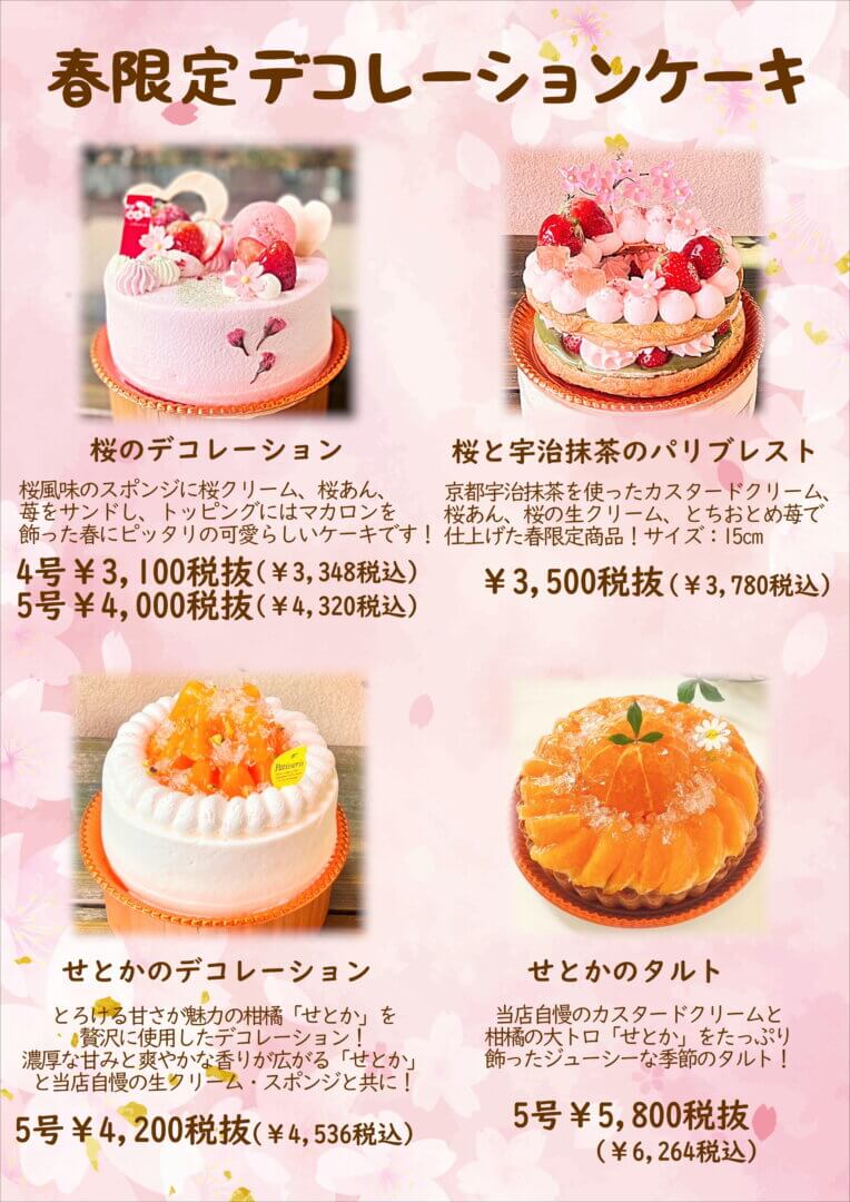 商品情報 春限定デコレーションのご案内 2026年3月18日 / バースデーケーキ、卒業、就職などのお祝いのケーキに是非いかがでしょうか🌸 ご予約も承っておりますので、皆様のご利用をお待ちしております♪